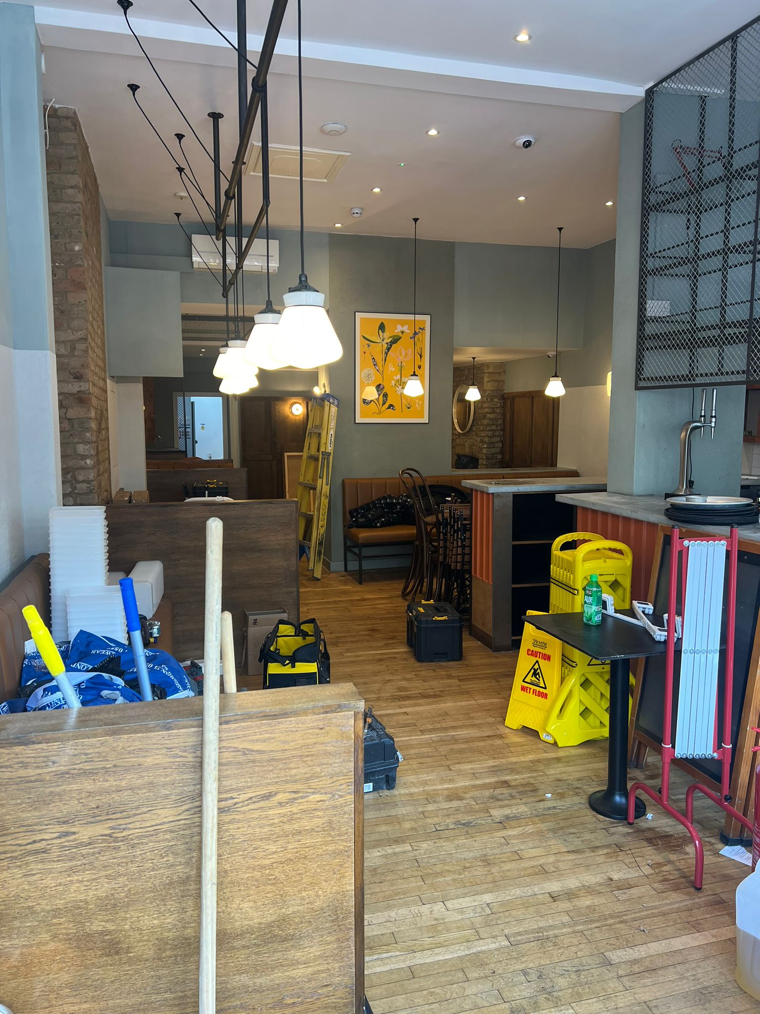 We were approached by a client who had taken over an existing closed down restaurant and required a full strip-out and fit-out tailored to their design specifications. Our team carried out a complete strip-out, installed new flooring, electrical systems, a suspended illuminated overbar, and tiles for the floor and counter front.